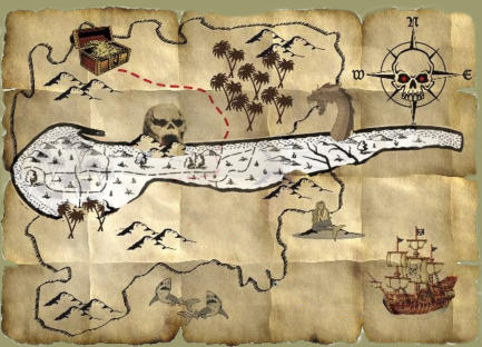 eiland. De kapitein had een kaart in zijn bezit, een verweerd stuk perkament dat hij jaren geleden had bemachtigd na een gevecht